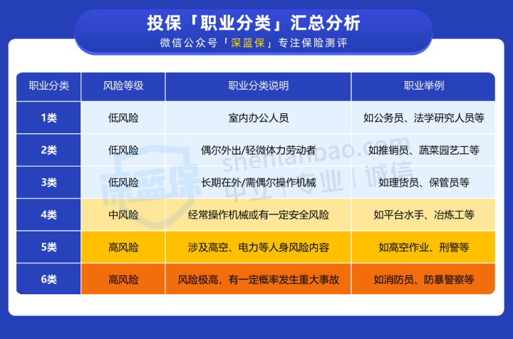可以看到,4-6类属于中高风险职业,很多保险公司,都不承保这些职业。