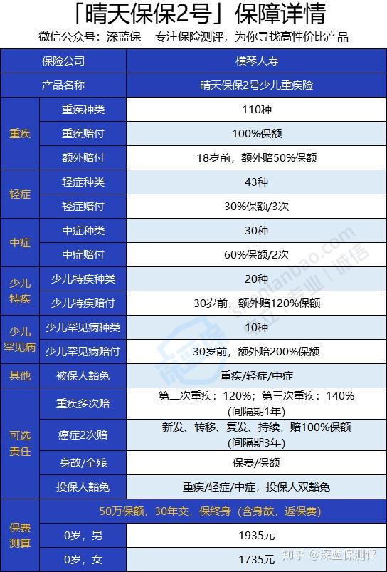 这不,横琴人寿又即将上线一款晴天保保2号少儿重疾险。