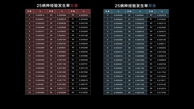 根据统计来看,0 - 40 岁发生 25 种重大疾病的概率大概是3%。