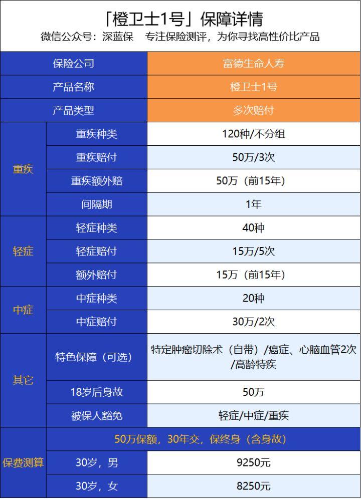 但是随着重疾险市场竞争日益激烈,越来越多的高性价比产品出险了,比如富德生命人寿旗下的橙卫士1号,它最大的特点就是重疾能赔多次,价格也非常便宜。