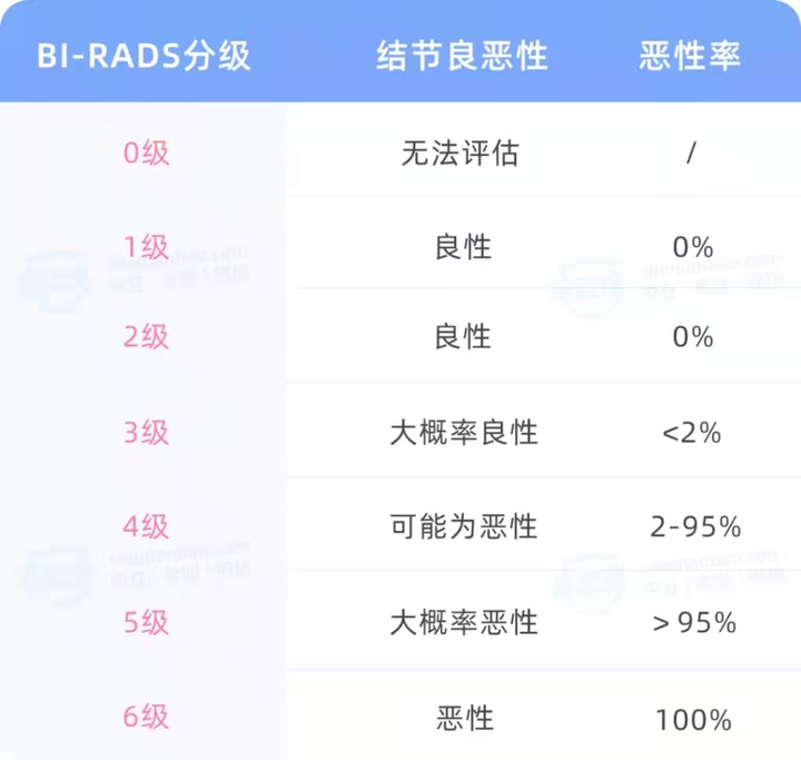 以乳腺结节为例,它的 BI-RADS 分级为: