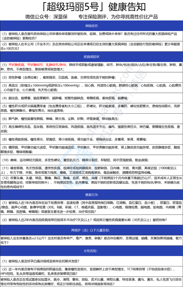 超级玛丽5号重疾险,甲状腺结节/乳腺结节能带病投保吗?健康告知严格吗?
