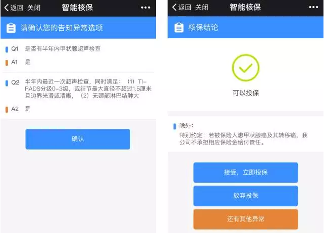 这就是智能核保的截图,如果大家不符合健康告知,建议大家试试智能核保,这就是保险公司加大技术投入的体现,实实在在地方便了我们投保人。