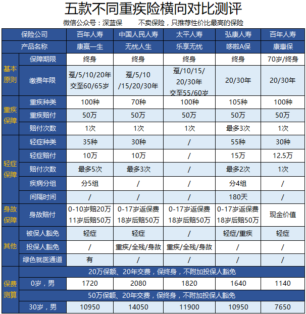 六款大公司重疾险测评,到底怎么选?(百年康赢一生/人保寿无忧人生/太平乐享无忧/哆啦A保/康惠保)