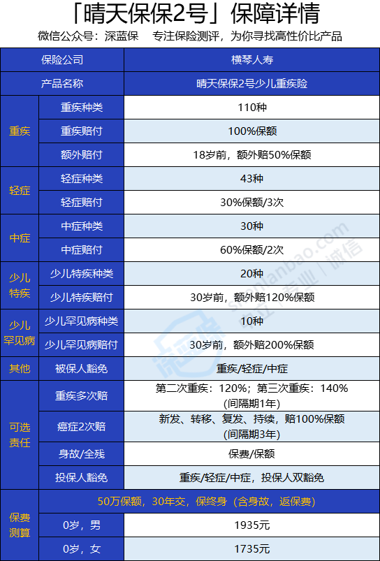 不过晴天保保2号也有一个不足:少儿特疾和少儿罕见病额外赔,在孩子30岁前才有效。