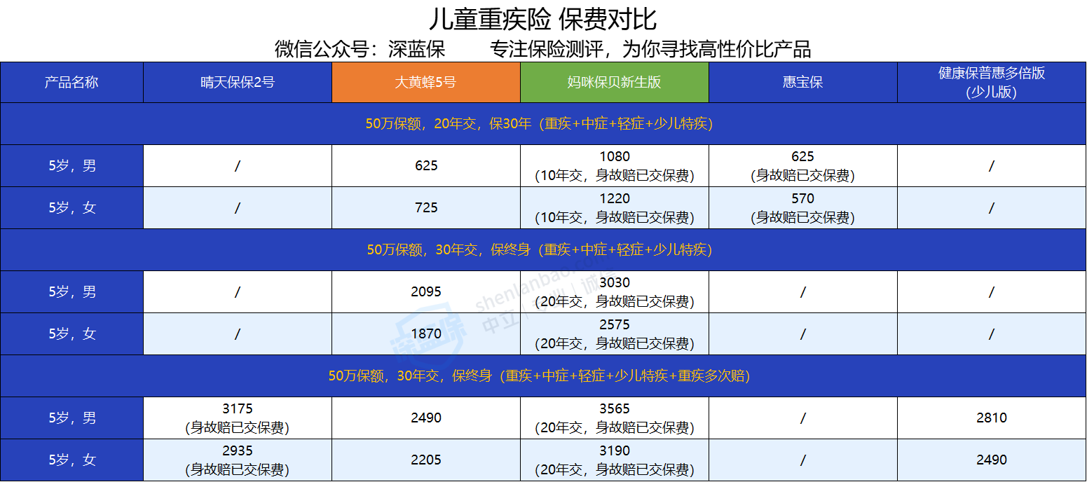 少儿重疾险哪款好?从这5款中挑!(晴天保保2号、大黄蜂5号、妈咪保贝新生版、惠宝保、健康保普惠多倍版少儿版)