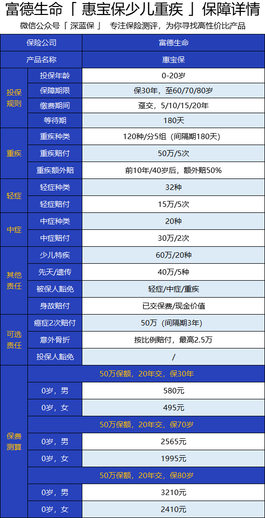 惠宝保是富德生命人寿旗下的一款少儿重疾险,保障全面,价格也很便宜。