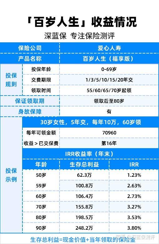 为了让大家更加清晰地了解年金险的具体收益,我们以「百岁人生」(福享版)为例,一起来看看收益情况: