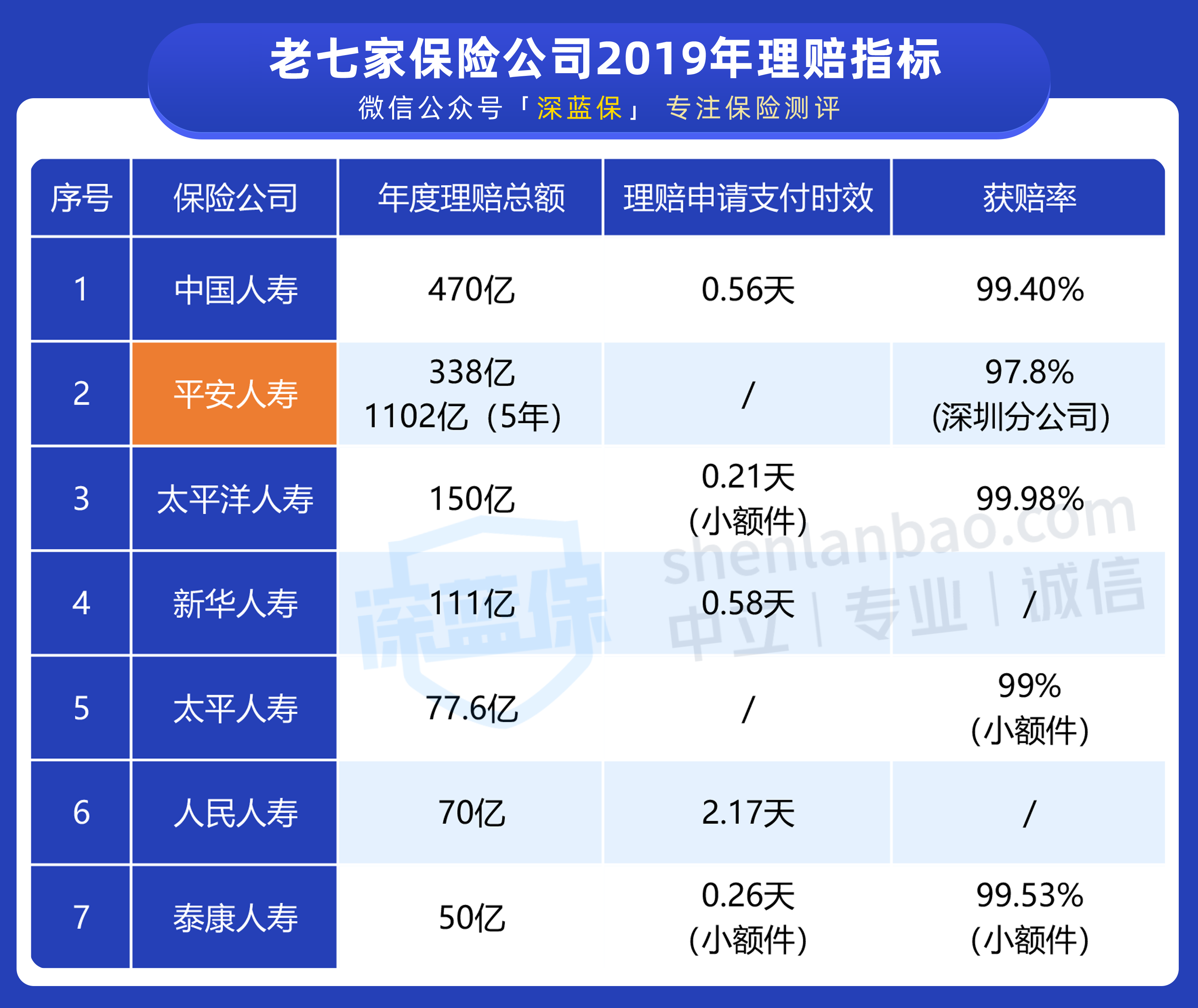 下面就通过数据,看看 平安 VS 其他六家大公司,理赔谁更优秀?