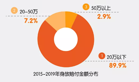 将近 9 成的客户不到 20 万保额,只有不到 3 成的客户寿险保额在 50 万以上。