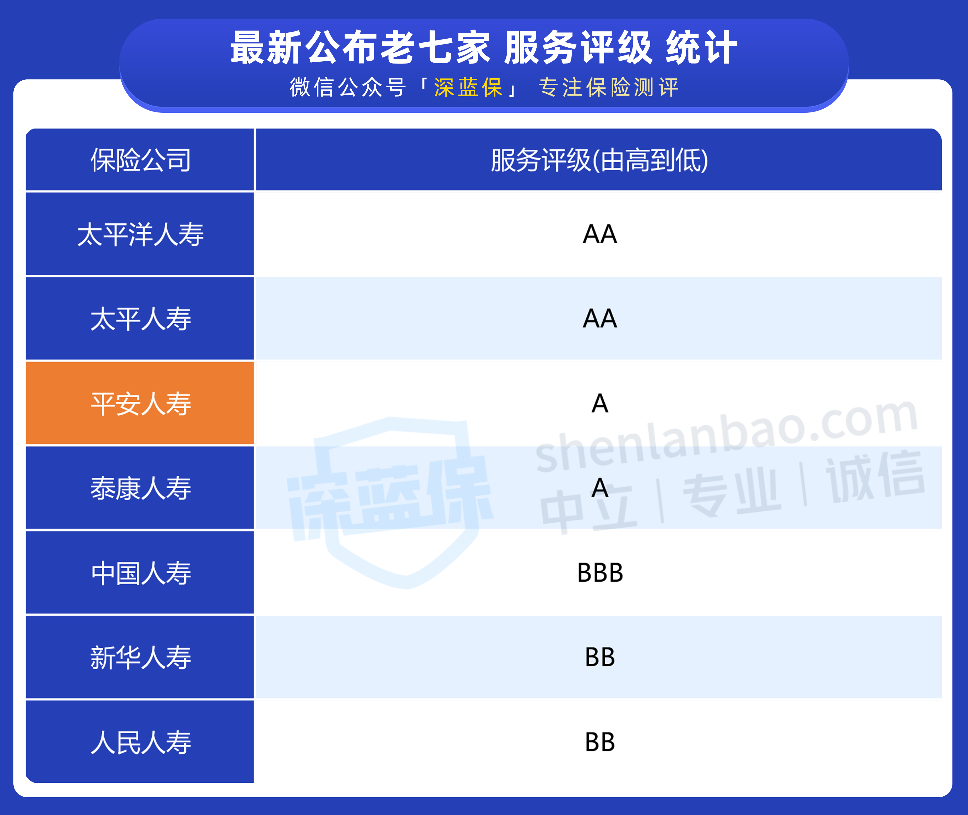 下面一起看看,老七家保险公司的最新评级: