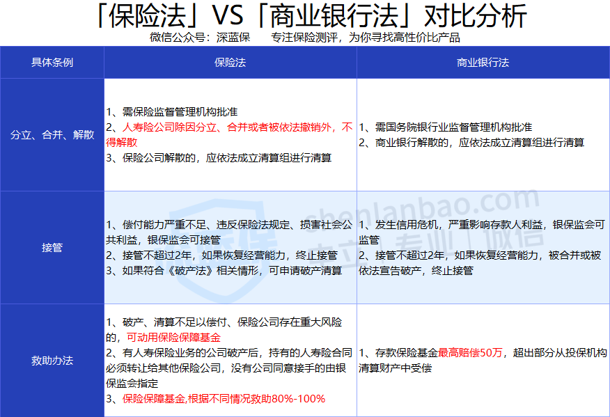 可以看到,保险公司和银行的接管制度差不多。但在解散方面,保险法对人寿保险公司有着更严格的制约。