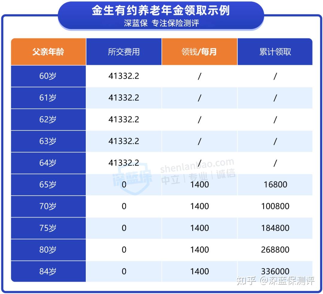 可以看到,王先生父亲到 65 岁开始,每个月可以领 1400 元,每年可以有 16800 元。