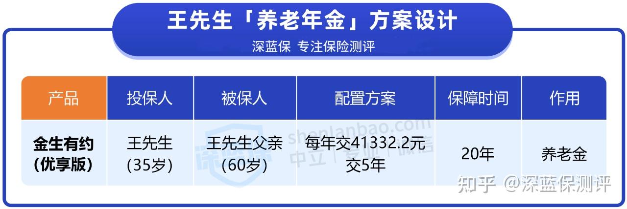 经过挑选,我们为王先生筛选了金生有约(优享版)养老年金,这款养老年金险每月可以给到父母一笔钱,基本符合王先生要求。