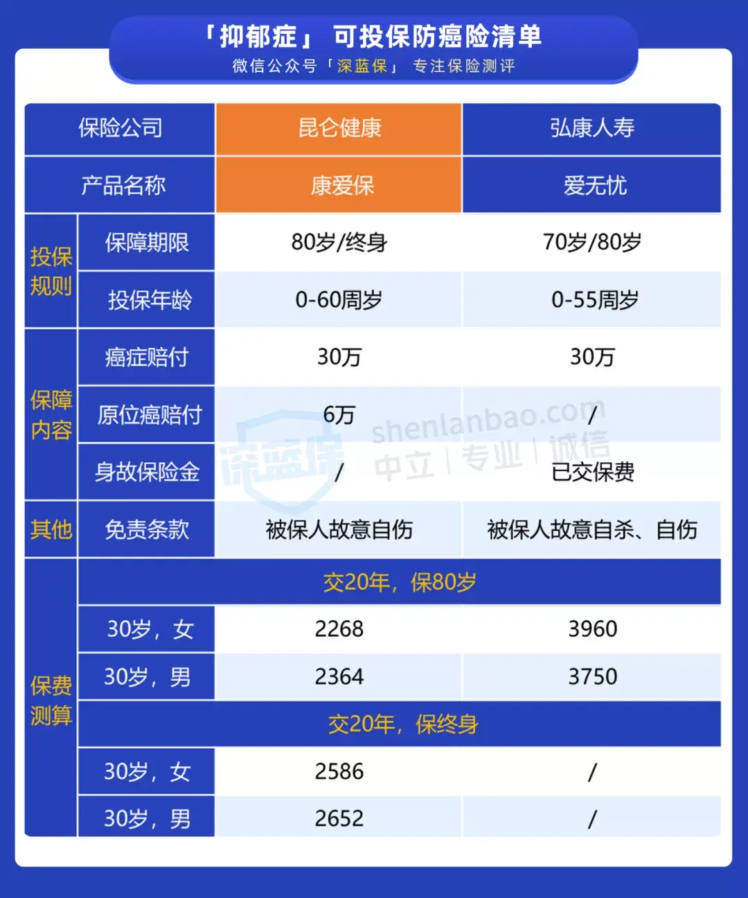 不过,由于癌症和抑郁症没有什么关系,防癌险相对容易购买。