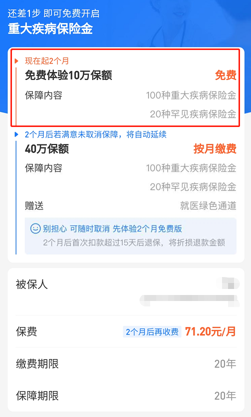 简单来说,就是支付宝先赠送我们一份免费的试用险,2个月后还未取消保障,才会扣款续保正式的保险。