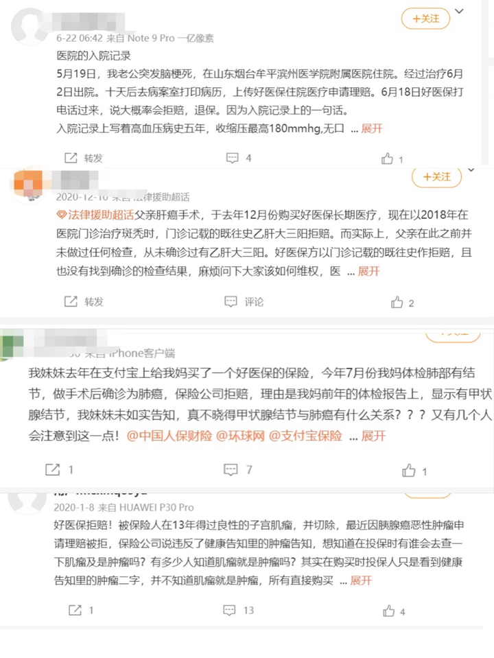 微博上,也有不少网友纷纷晒出了被好医保拒赔的真实经历,不断挑战人们对支付宝信任的底线。