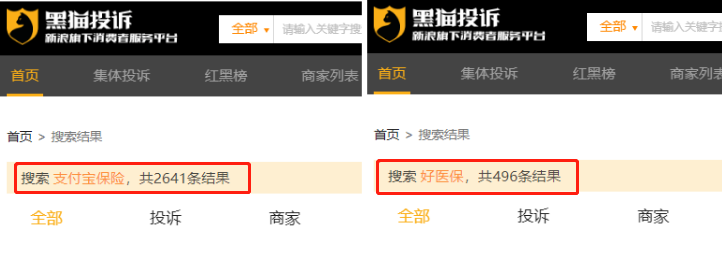 比如,在黑猫投诉网站上,仅仅是支付宝保险、好医保相关的消费者投诉案件,加起来就有3000条之多。