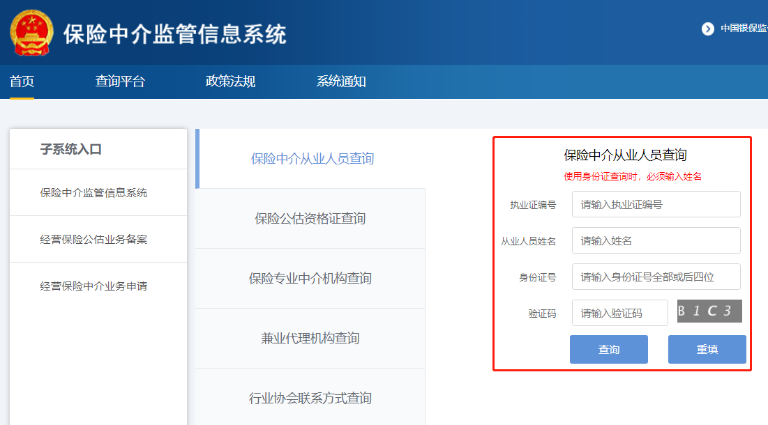 只要输入从业人员姓名、执业编号和身份证后4位,就能查询到给你卖保险的人的所属公司,业务范围,还能查询到关联的表彰记录及违法违规记录。
