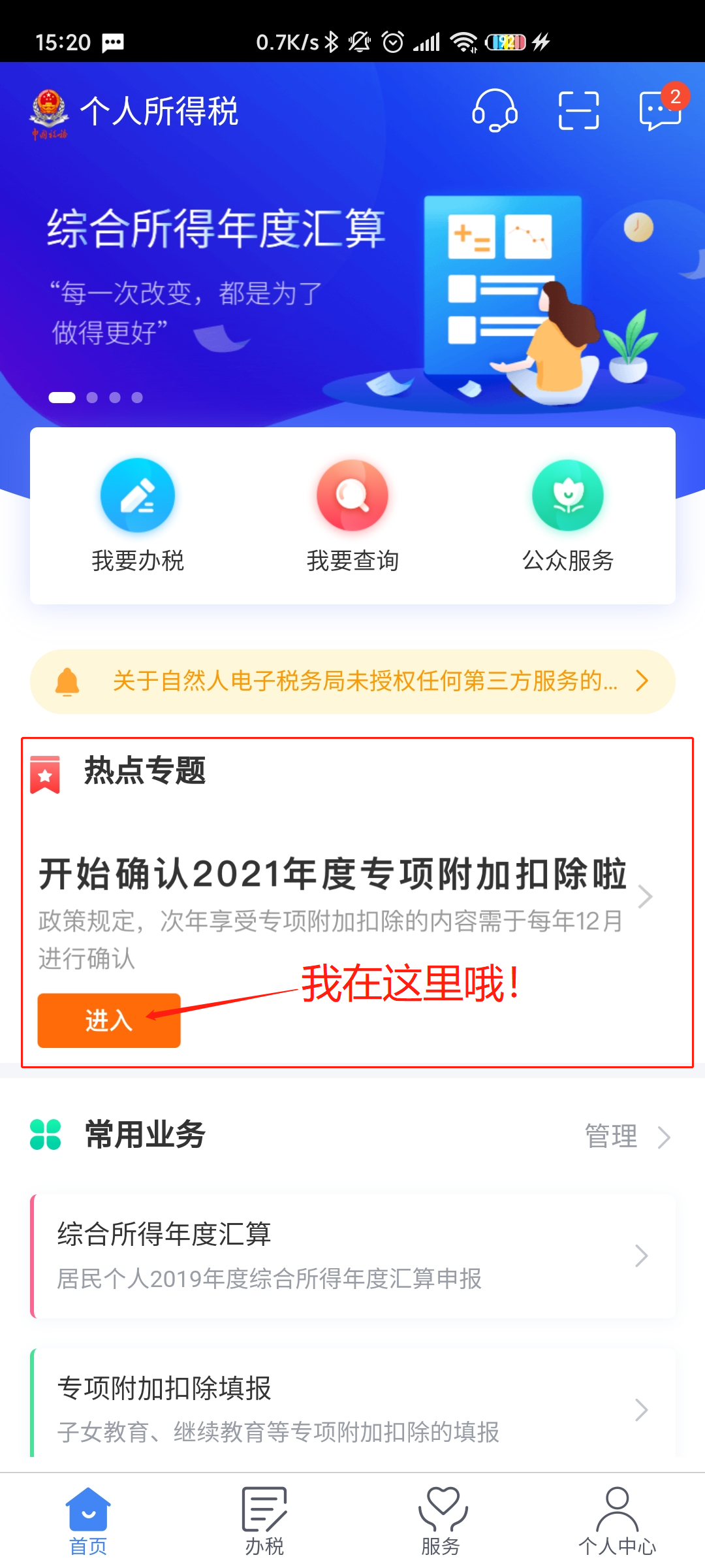 ① 打开个人所得税APP,在办税里找到 综合所得年度汇算
