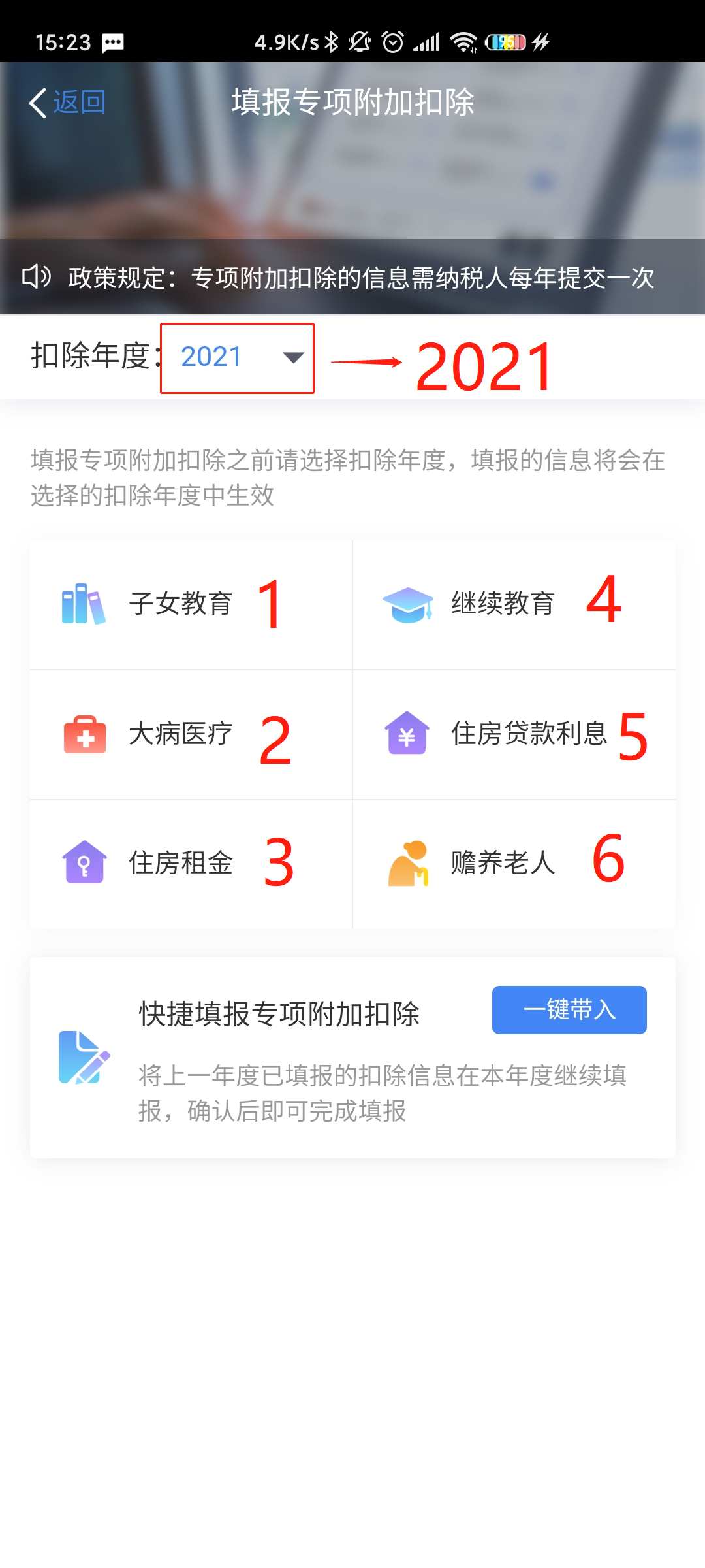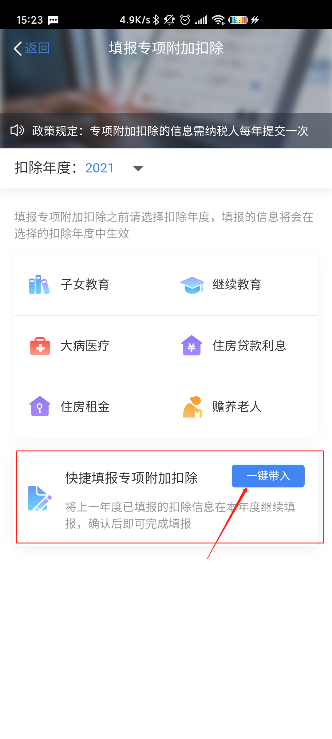 如果去年填写过了,今年信息也没有变化。那可以直接一键带入去年的申报内容。