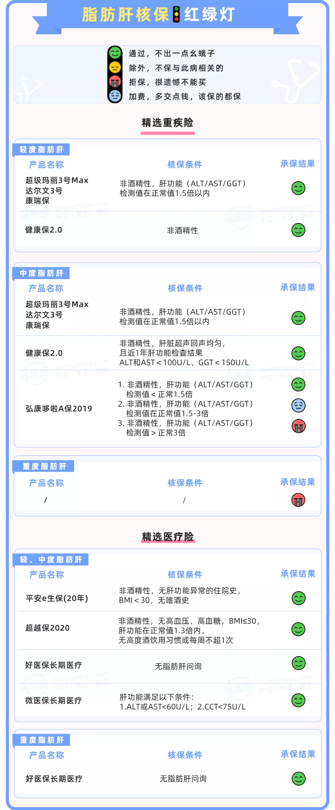 医疗险相比重疾险更严格,除肝功能外,要综合评估血压血糖等情况。