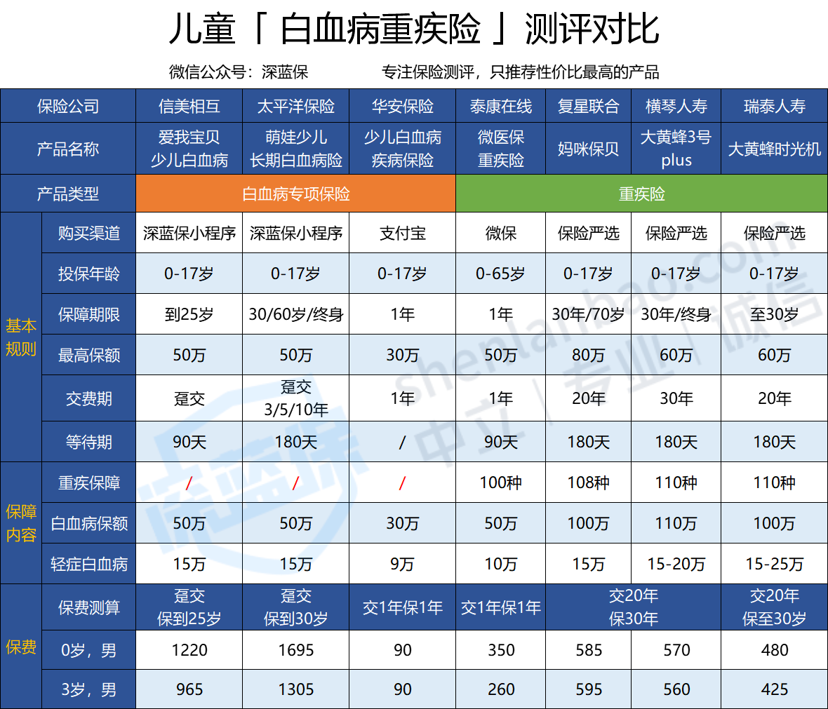 我整理了一些比较不错的 白血病专项保险,并加入了几款优秀的儿童重疾险来进行对比。