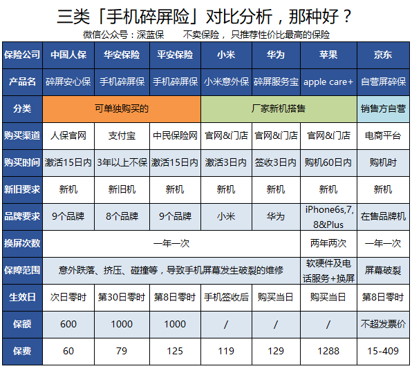 深蓝君总结了一下,目前是市场上的碎屏险主要可以分为3类: