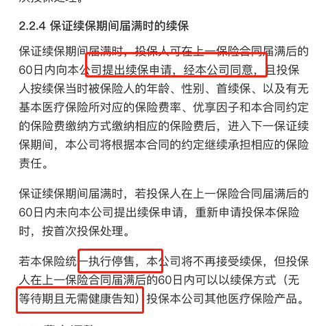 但如果,产品停售了,都能无健康告知无等待期续保公司其他产品。