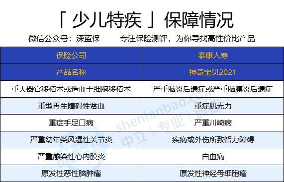 泰康神奇宝贝2021保障了12种少儿特疾,其中一半为高发的少儿特疾。