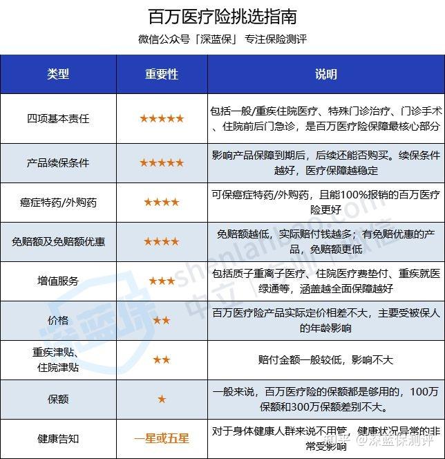 百万医疗险虽便宜,但也不要随便乱买,一般来说,选购百万医疗险需要考虑这几点: