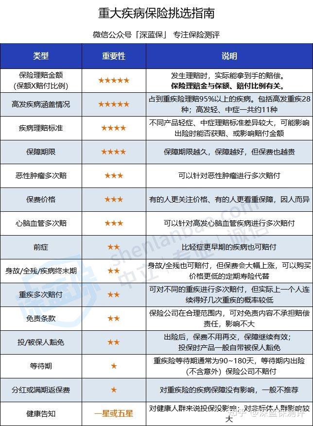 重疾险比较复杂,这里我把重要的挑选要点都已经罗列出来了,大家可以参考下图: