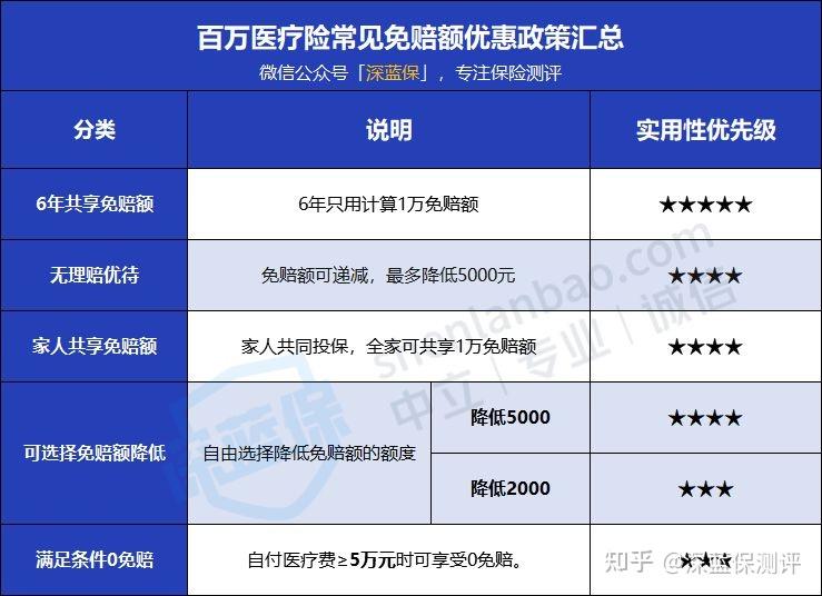 目前,百万医疗险的一般医疗免赔额为1万,重大疾病医疗通常0免赔。
