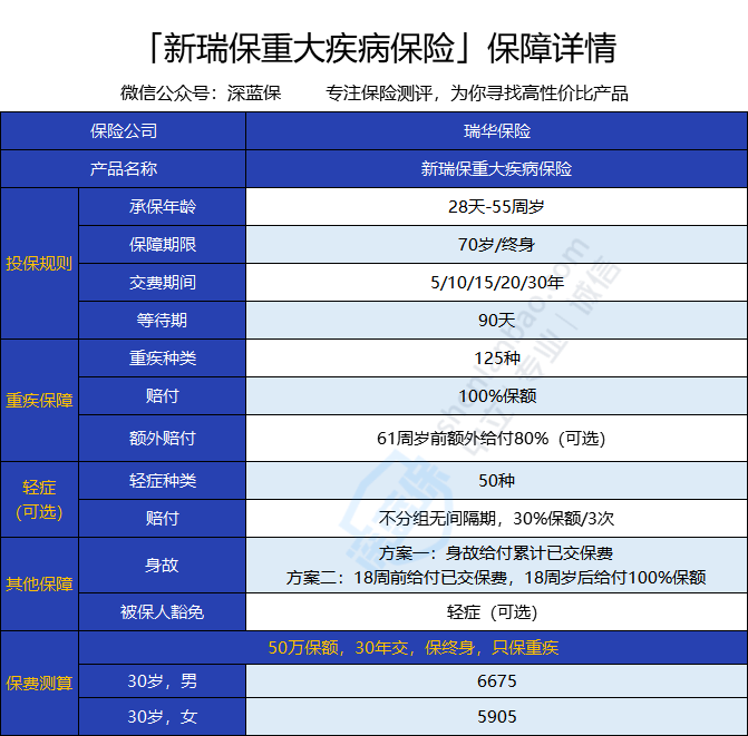 新瑞保重疾险是瑞华保险推出的一款产品,这款产品保障不是很全面,没有中症保障,自带身故责任,并且价格贵。
