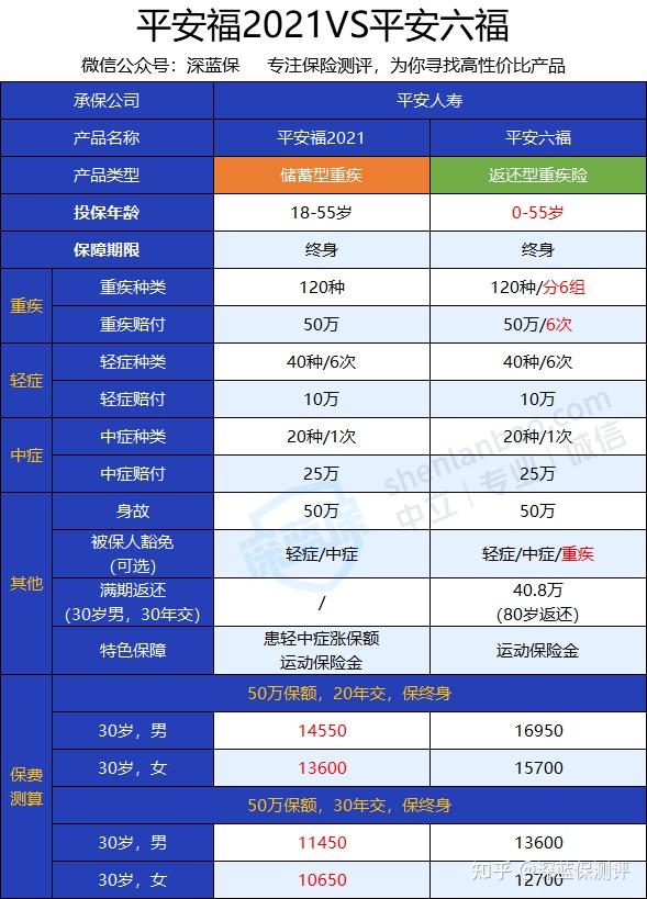 - 平安福2021VS平安六福,买谁更划算?