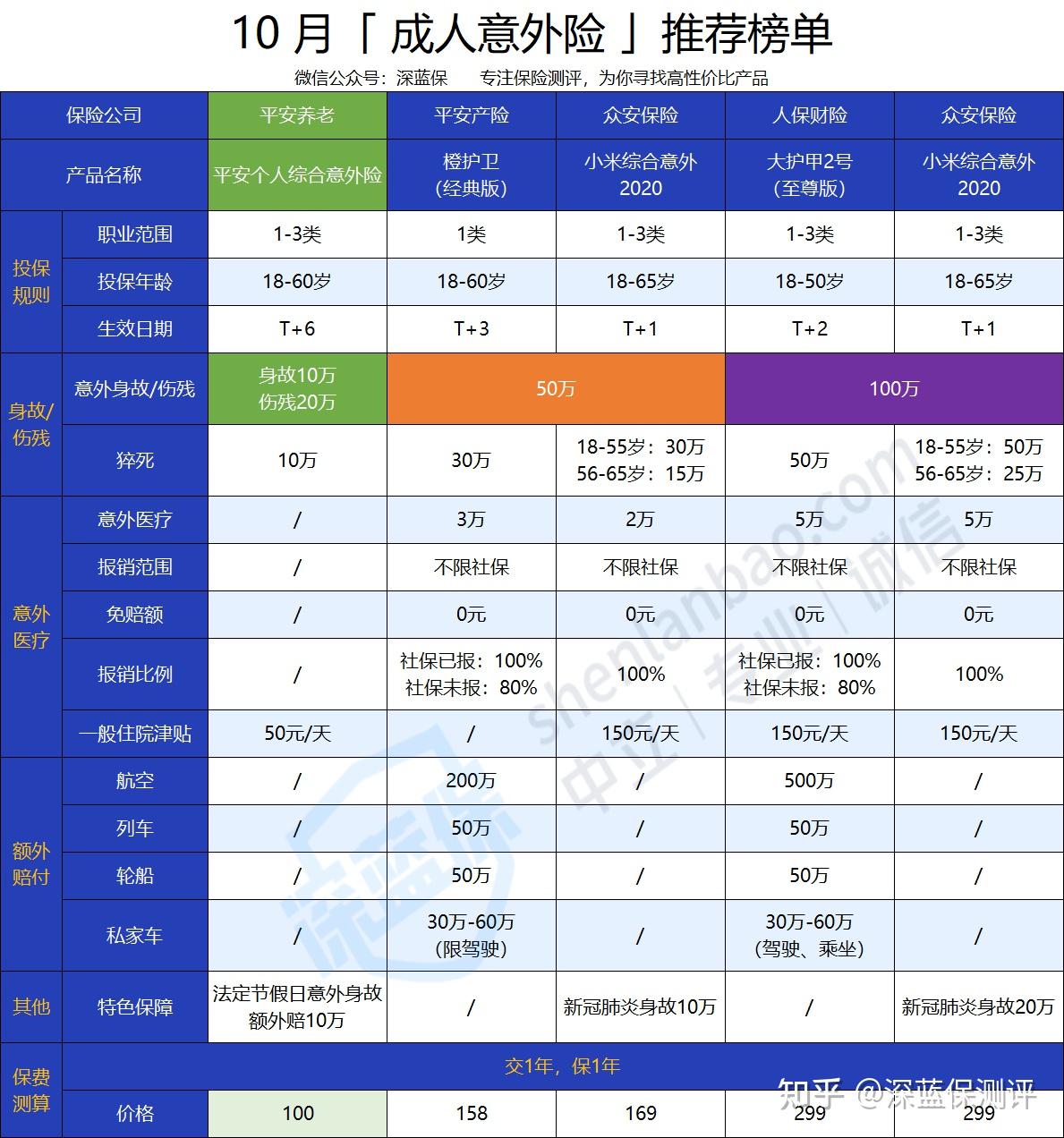 我们将它跟几款高性价比的意外险对比看看: