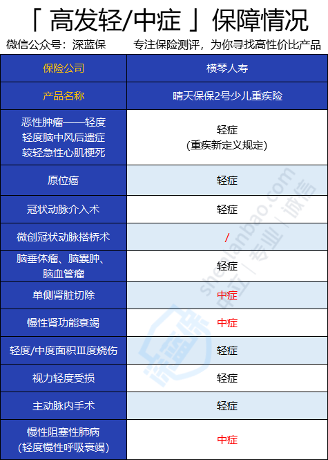 下图是晴天保保2号对于高发轻中症的覆盖情况:
