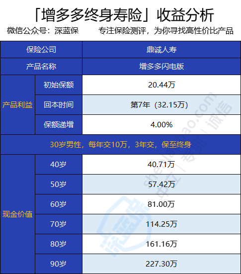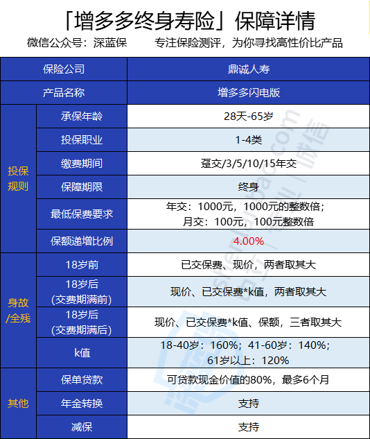 鼎诚人寿新上线了一款增额终身寿险——增多多闪电版。