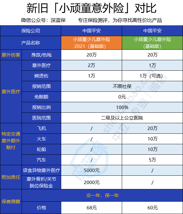 小小说明一下,小顽童少儿意外险2021就是由小顽童旧版升级而来的,因此放在一起对比。