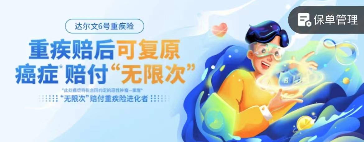 ① 达尔文6号自带第二次重疾保险金,如果在60岁前发生第一次重疾,间隔1年后发生其他重疾就能再赔一次,最高可赔付100%保额。