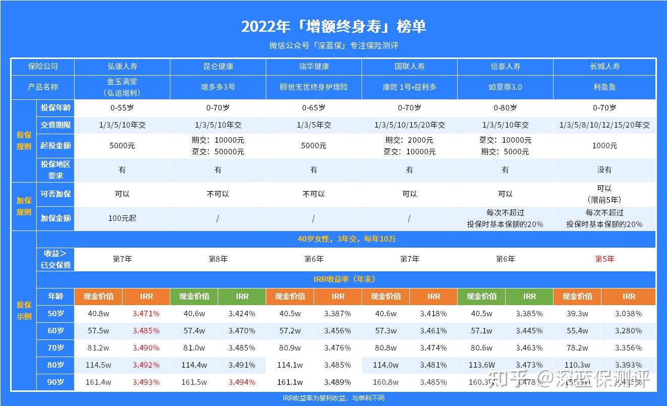 如果想买增额终身寿险,不知道该怎么选择的话,深蓝君这里整理了一份2022年的增额终身寿险榜单,供大家参考。