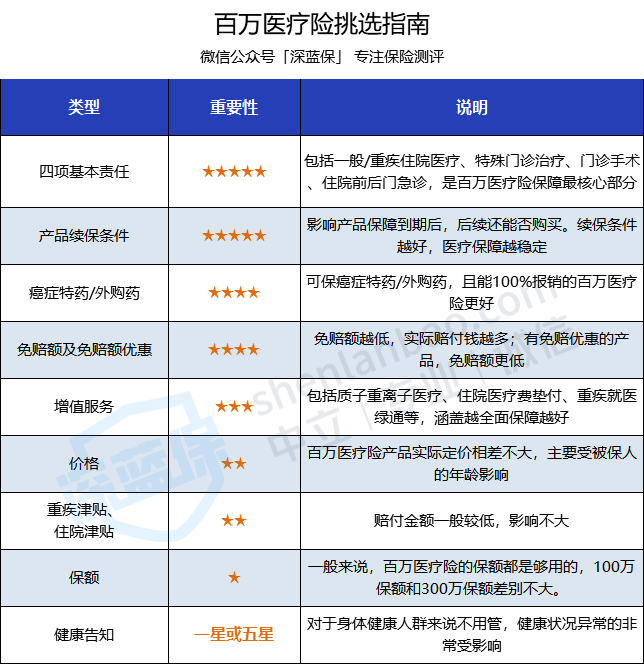 百万医疗险虽便宜,但也不要随便乱买,一般来说,选购百万医疗险需要考虑这几点: