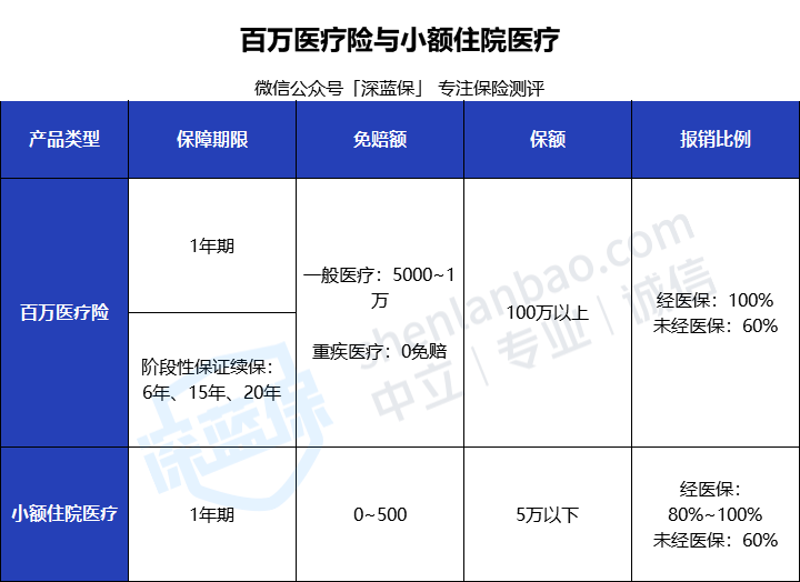 但实际上,百万医疗险和小额住院医疗并不矛盾,二者甚至可以互为补充。