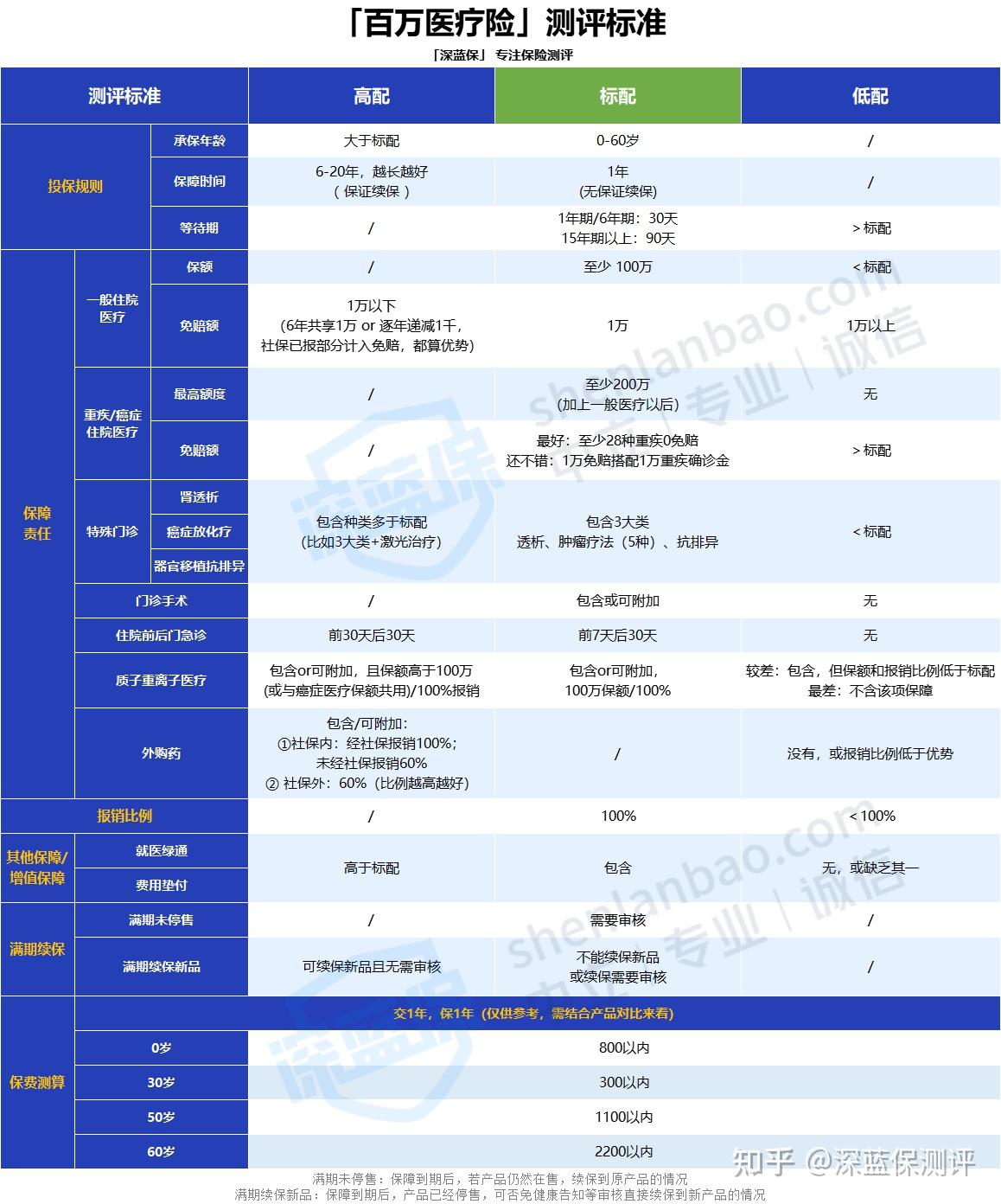 综合这张表格,我们把基础保障齐全、一般医疗的免赔额不高于1万、住院医疗费能100%报销,最高能报几百万的产品认定为标配合格产品。
