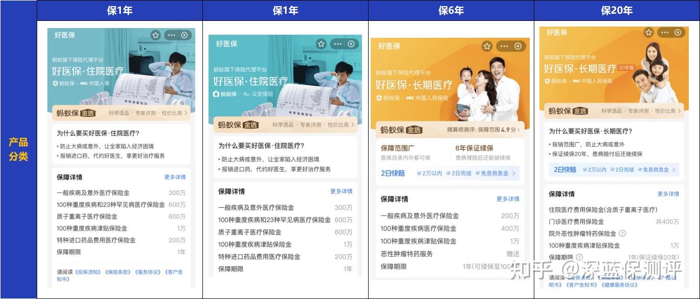 「好医保」系列中共有4款百万医疗险,分别可以保1年、6年和20年:
