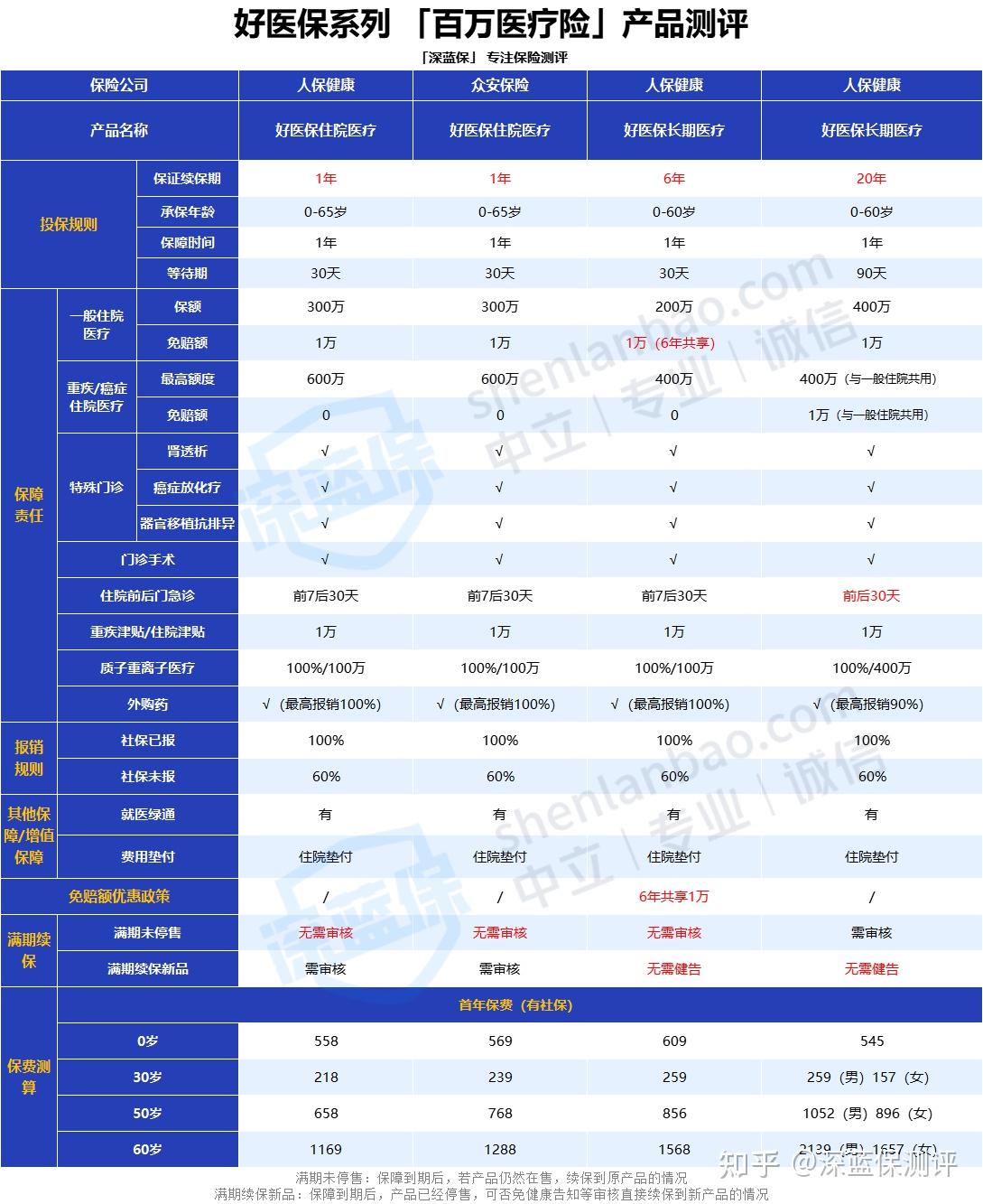 ● 「标配」产品:好医保住院医疗险的续保条件非常一般,1年保障到期后,需要重新审核才能续保,若是身体变差可能就买不了了;若是次年该产品停售下架,同样也是无法续保的。