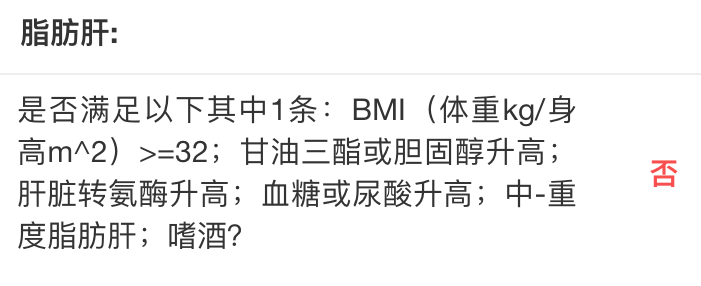 通过上图我们可以看到,只要没有过度肥胖、肝功能正常、不是中度/重度脂肪肝,通过智能核保都是可以标准体购买尊享e生的。