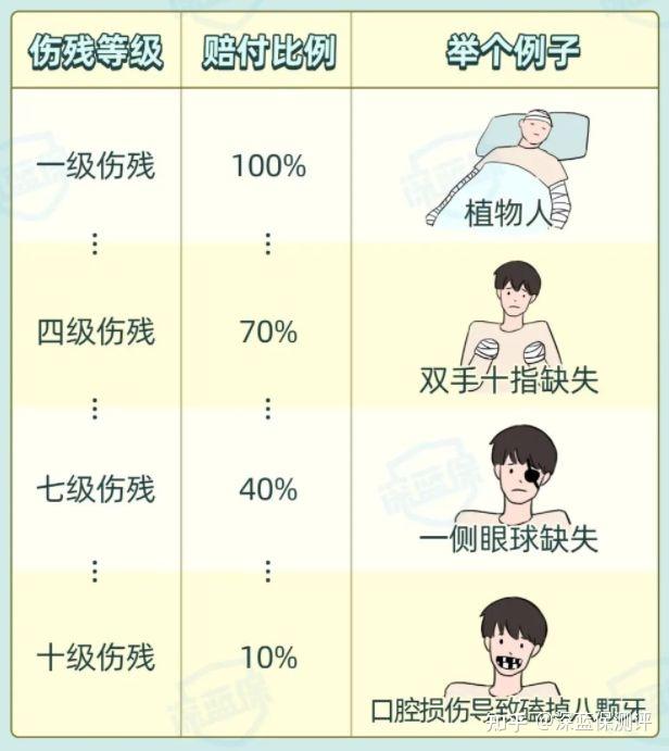 意外险的伤残保障是它独有的王牌,伤残越重,赔付比例越高。