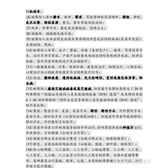 除一些重大犯罪行为外,免责条款中提到的一般健康检查、整容手术、精神疾病等等,产生的费用都不会报销。
