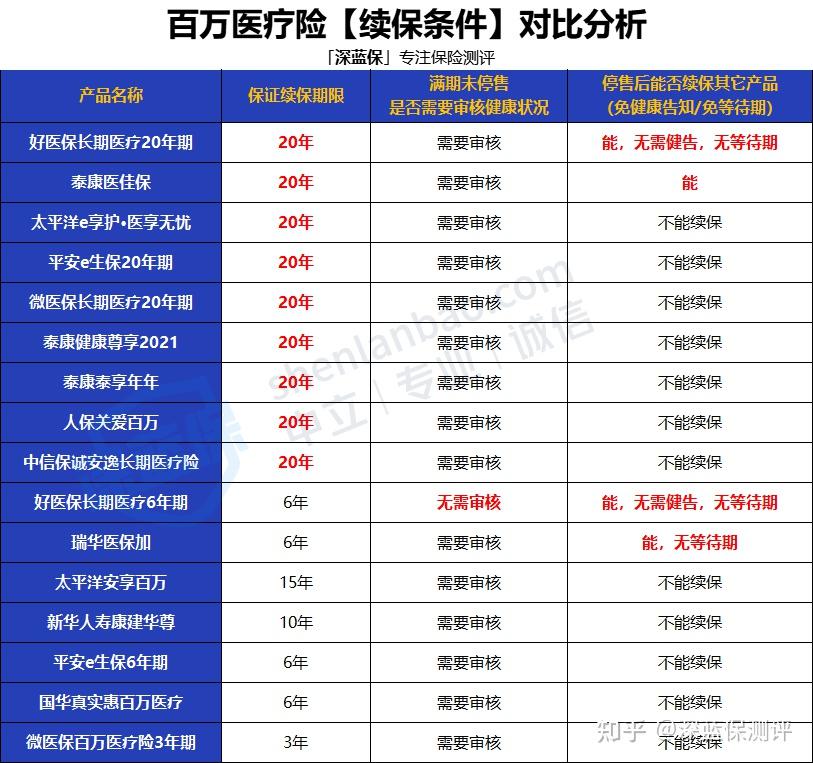 根据续保条件的不同情况,我们搜罗整理做出了对比分析。